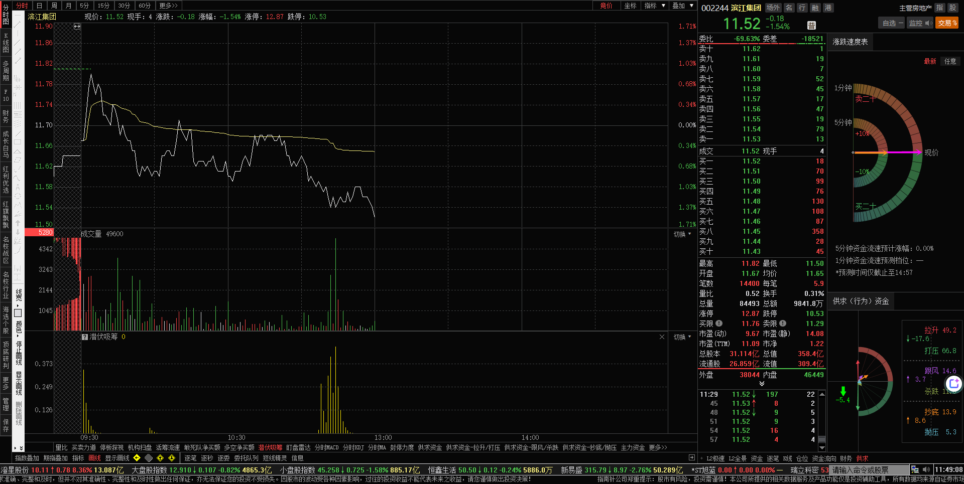 今天上午滨江做T完成。11.50元左右又到短线买进价了。