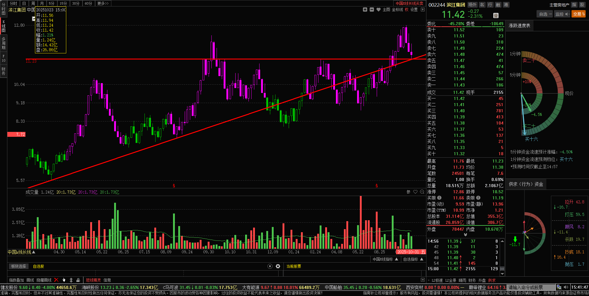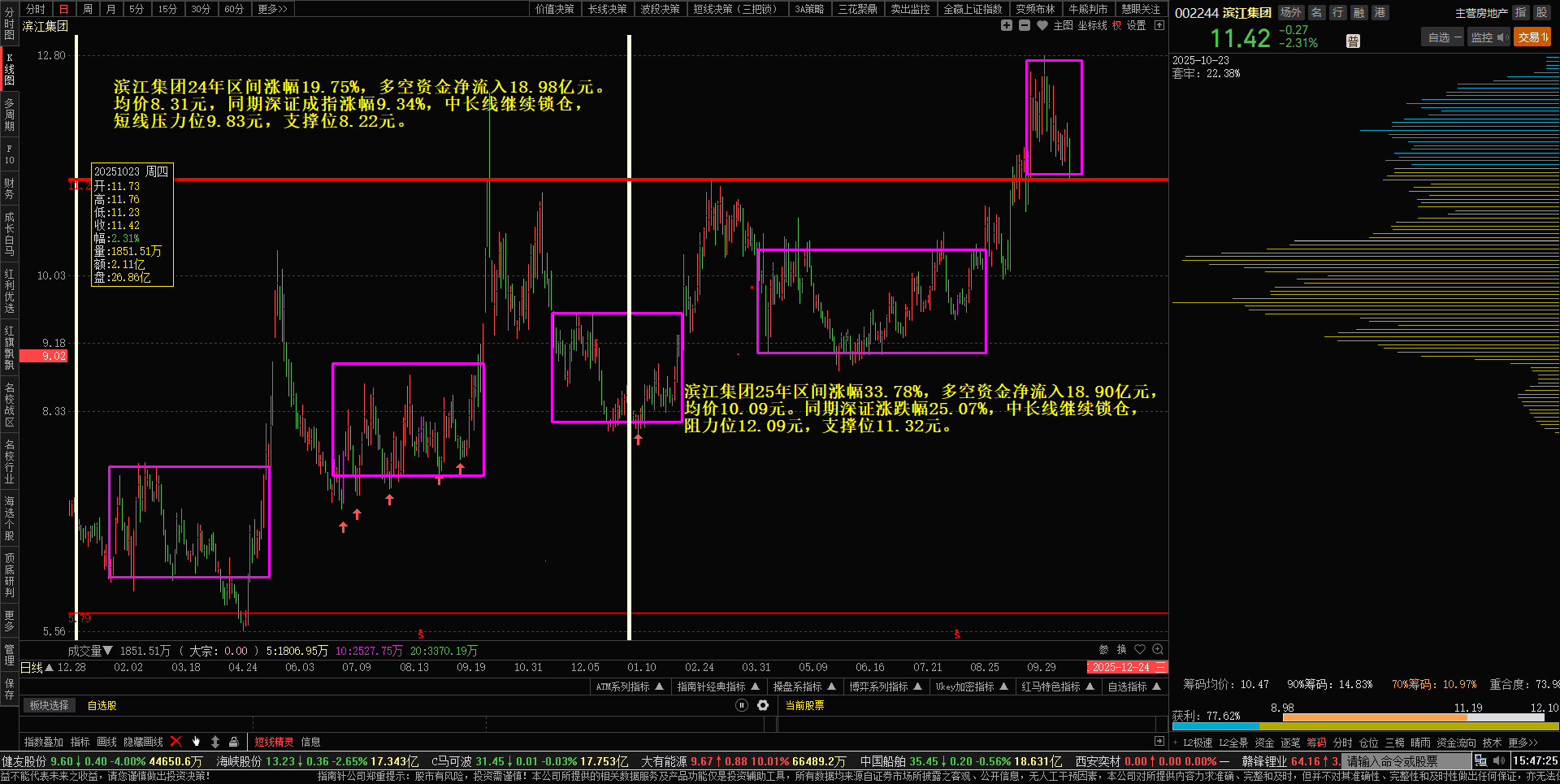 今日滨江区间盘整,继续锁仓,做盘中T。11.27买进。11.44卖出。短线支撑位