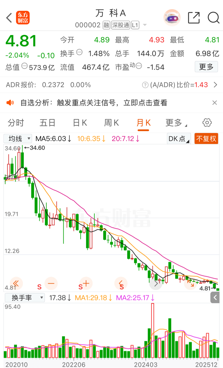 $滨江集团(SZ002244)$ 还是比万科A强点