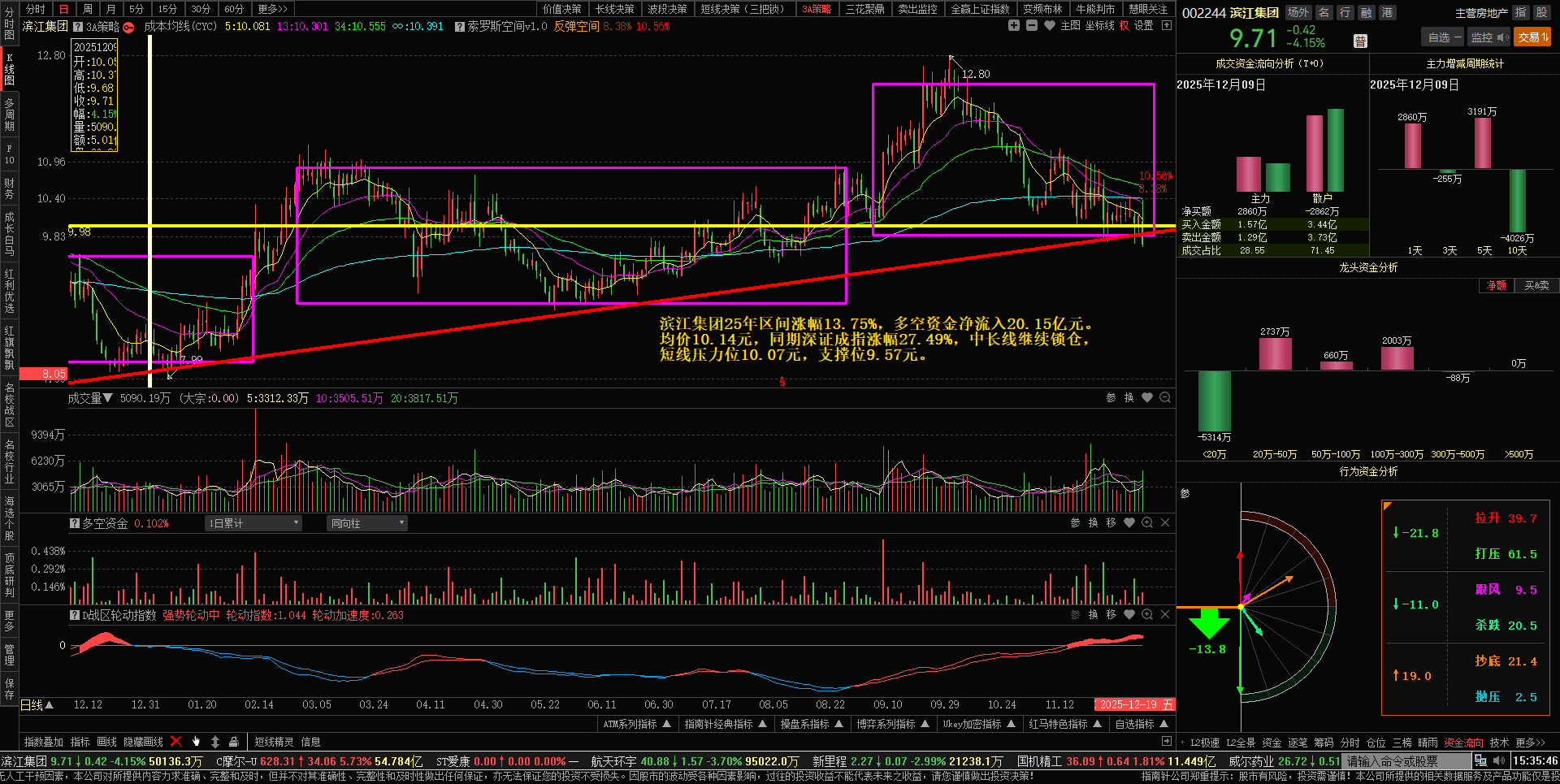 今日滨江主力机构趁大股东减持期间逆势增持2860万元(东方财富软件显示增持5351万元),明日9.60以下可以短线补仓做T,摊低持仓成本。保持好心态。