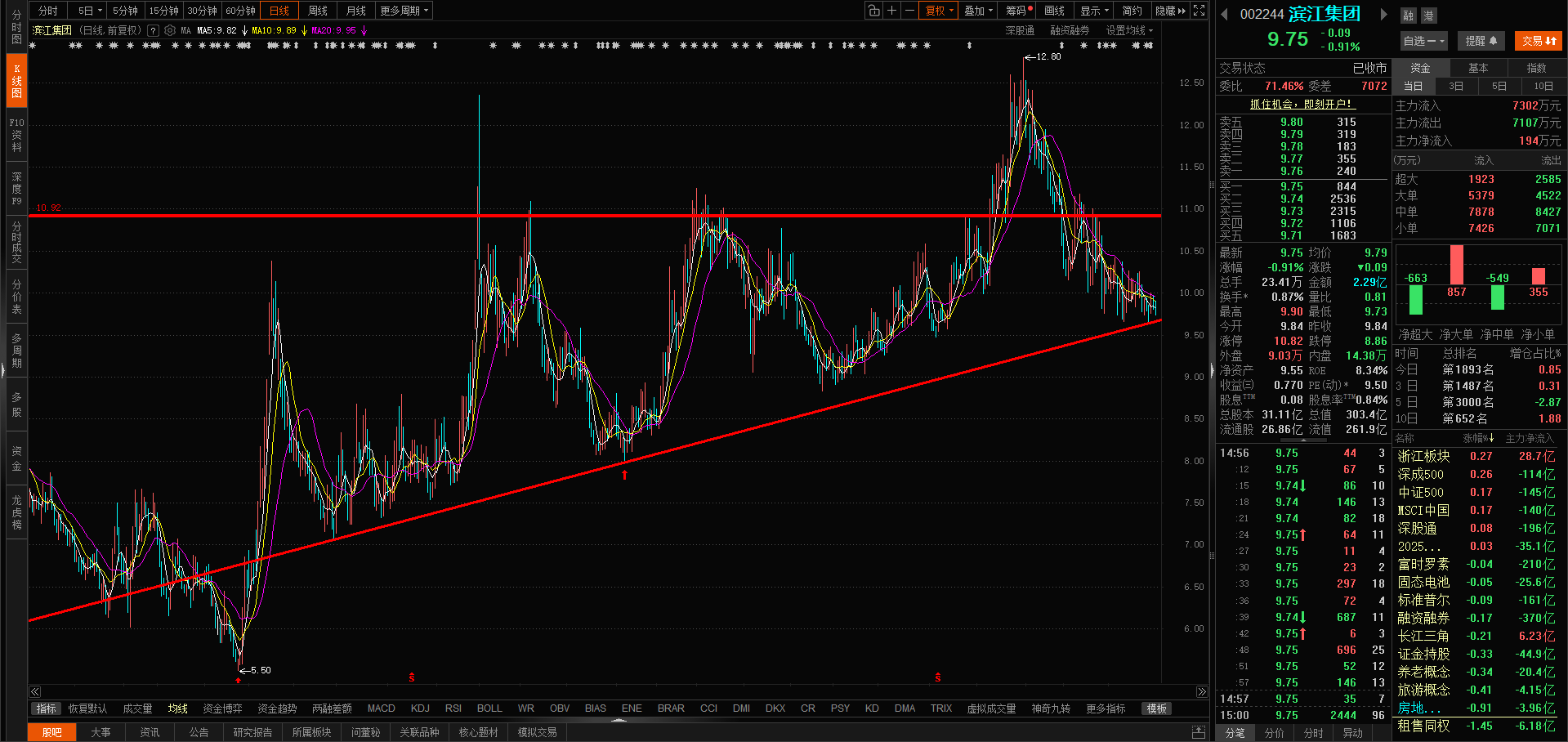 滨江25年线能跟随大盘上涨已经很不错了。