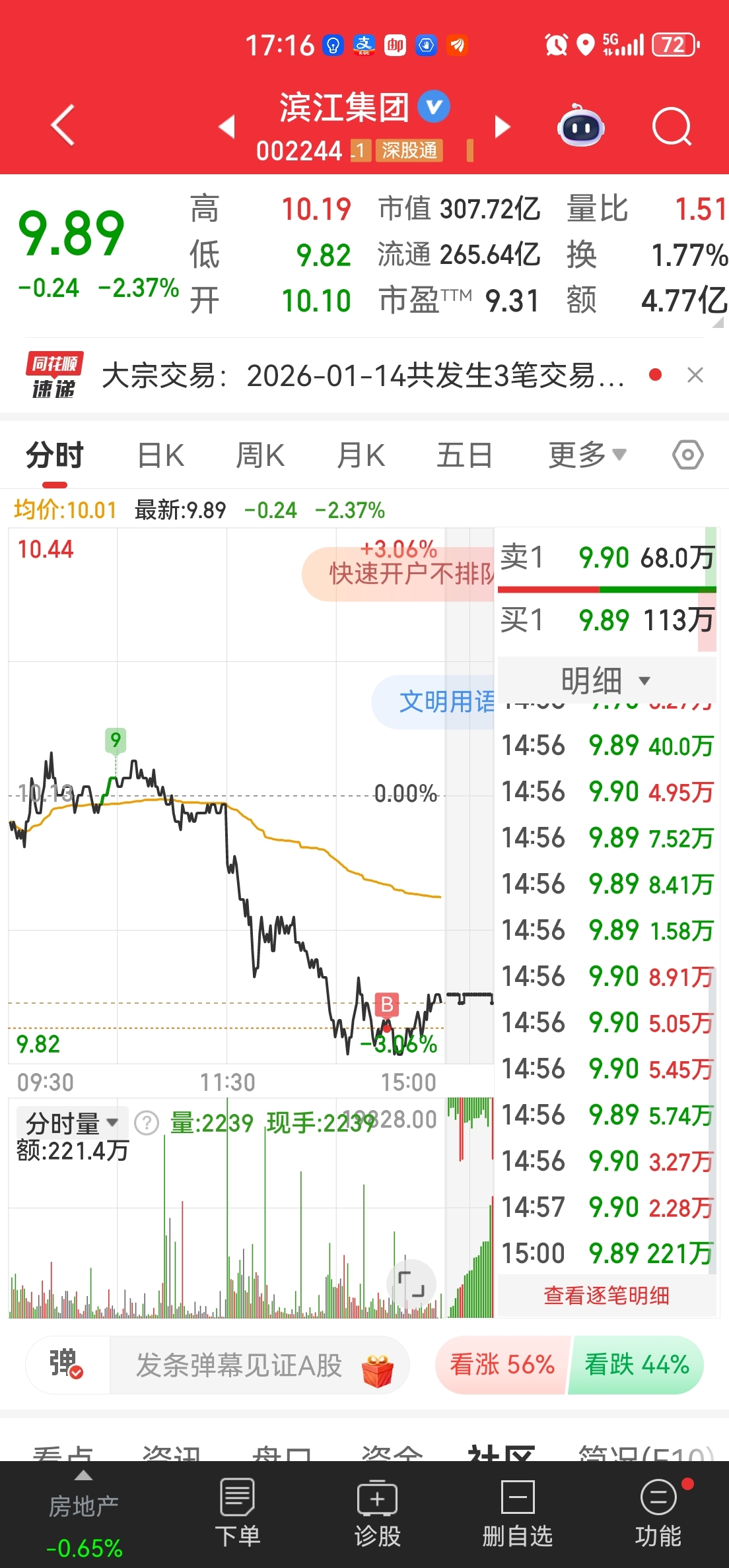 9.86成本,明天能有肉吃吗?我看房地产已经利好了