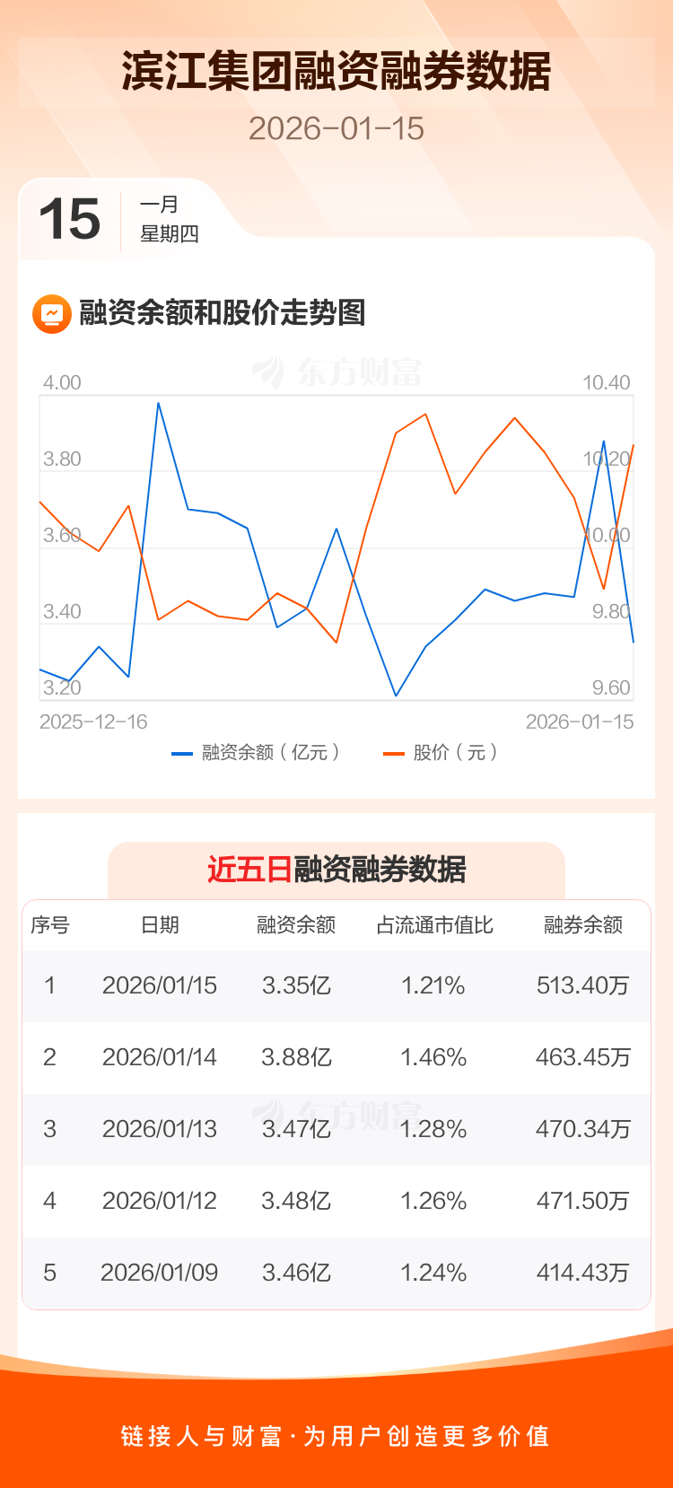 交易所最新数据显示,滨江集团于2026年1月15日获融资买入5431.76万元,融资偿还1.08亿元,当日融资净偿还5334.31万元。目前,该股融资余额3.35亿,占流通市值比例为1.21%。