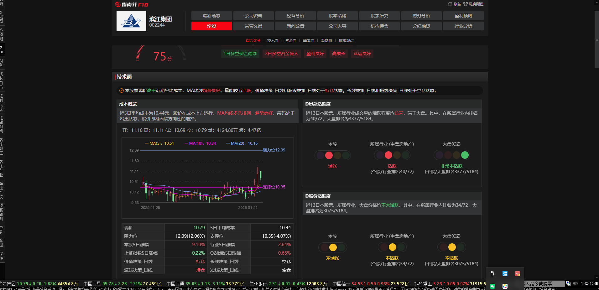 今日滨江缩量回车整理,收盘价10.79元,主力资金净流入92万元,明天有望重拾升势,保持好心态。