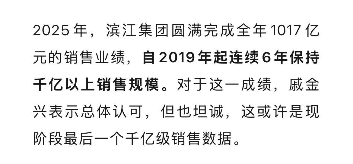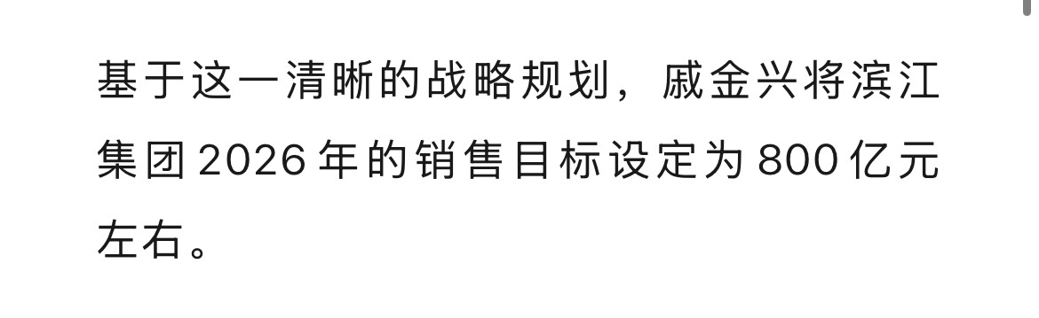 $滨江集团(SZ002244)$ 2026年销售目标调降200亿,从多年1000亿降到800亿,也是顶不住了