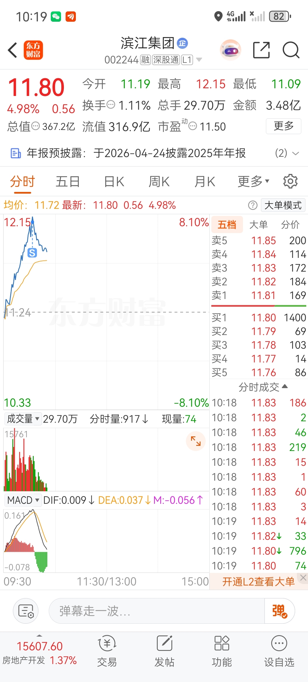 $滨江集团(SZ002244)$ 走了,宝,我就没见过滨江涨停过