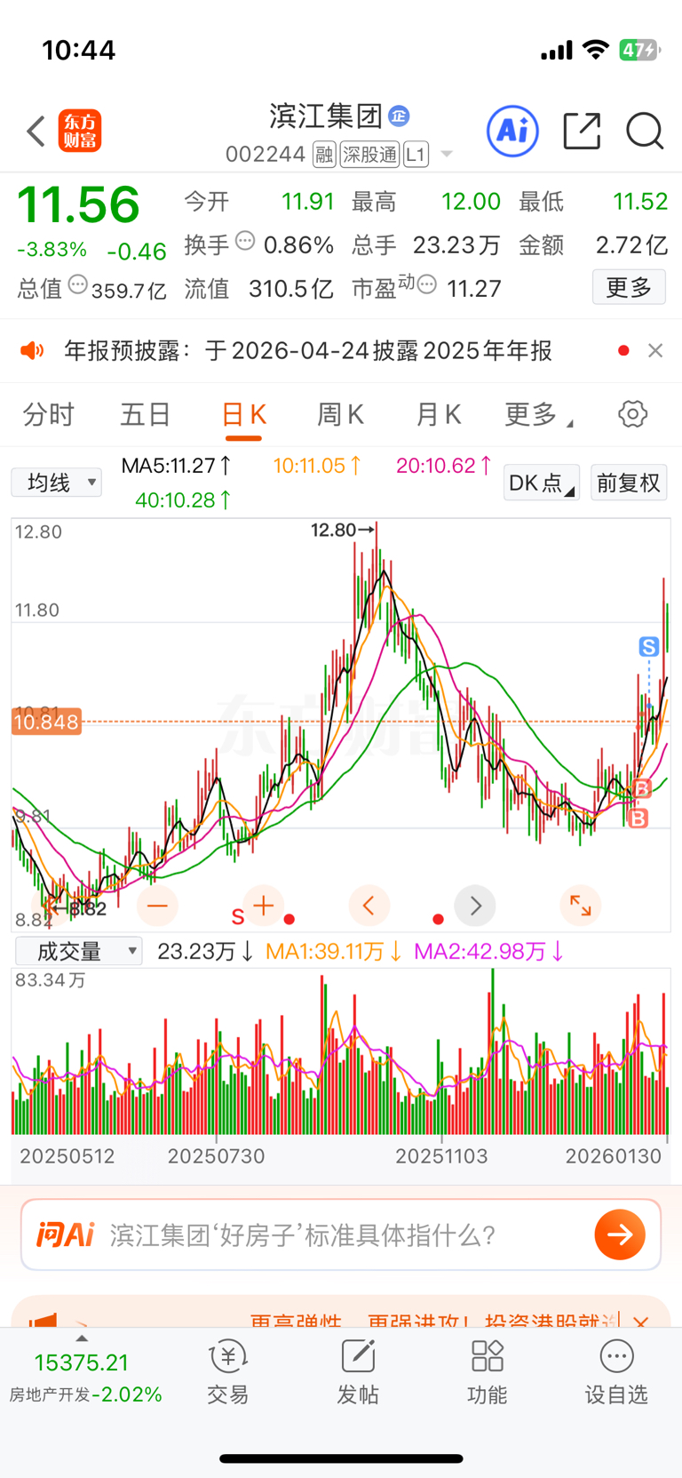 $滨江集团(SZ002244)$ 不到13不走