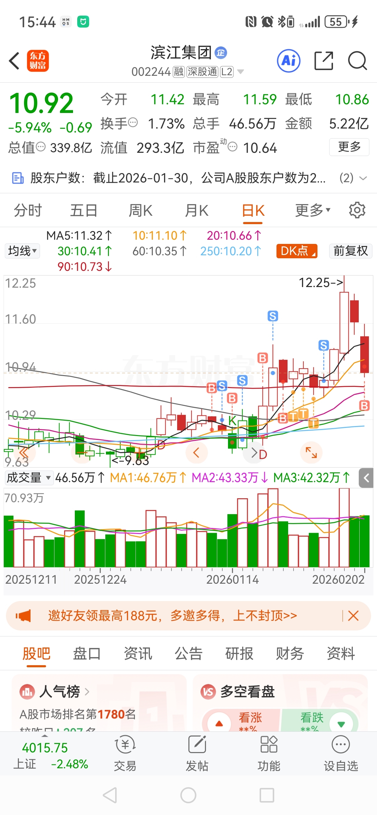$滨江集团(SZ002244)$ 我回来了,明天允许你套我一个点,别多套啊
