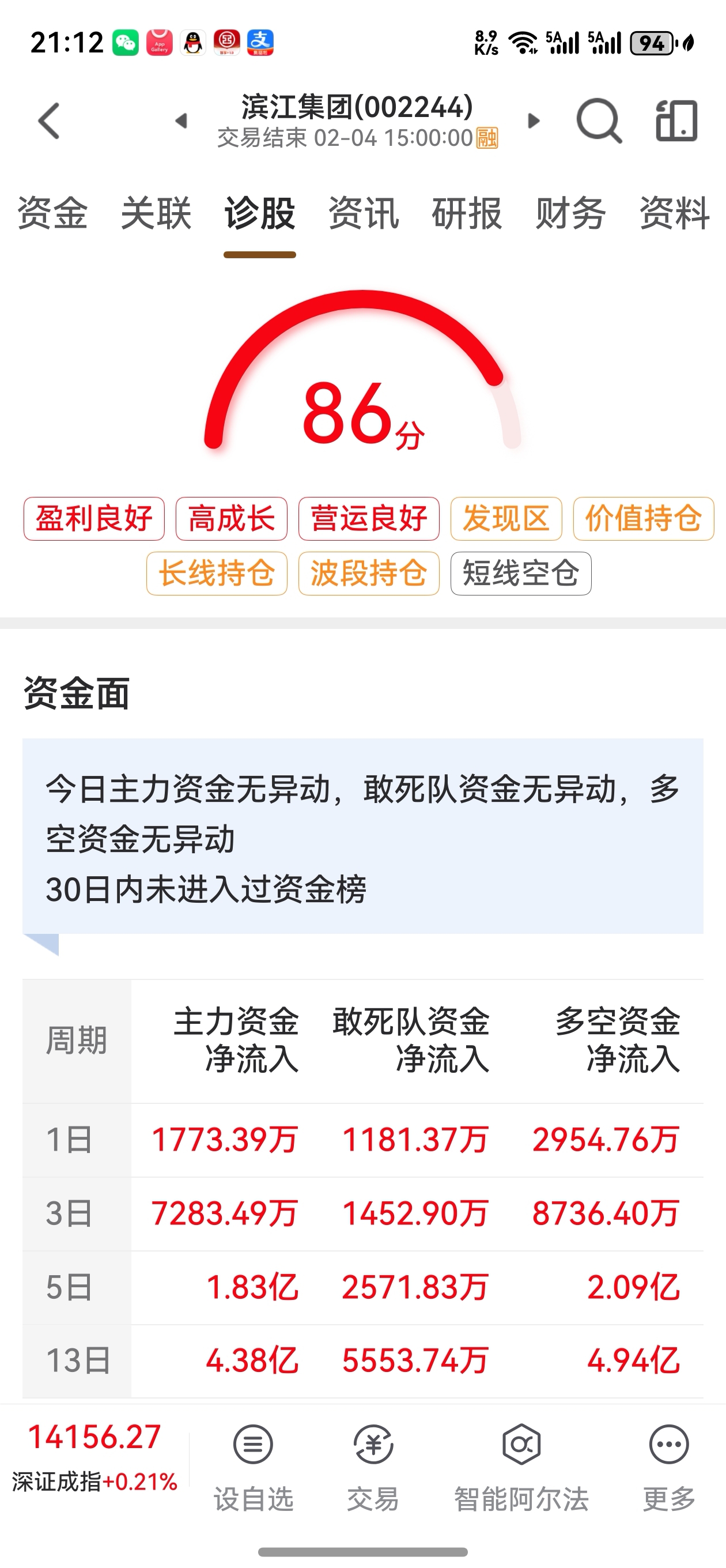 今日该滨江主力资金继续做多。今日短线均价12.08元减仓了部分,明后二天再逢高减