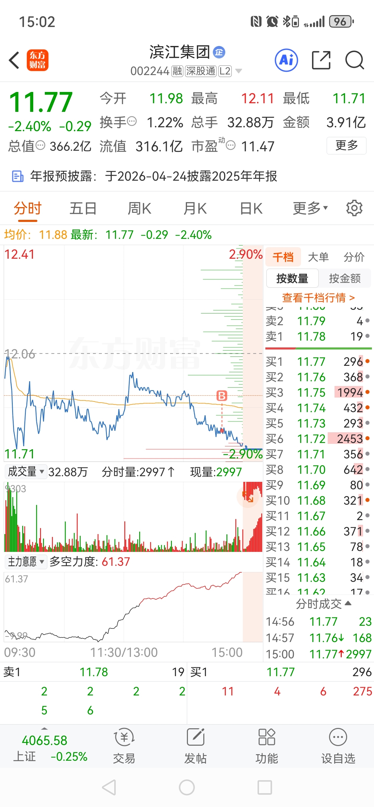 $滨江集团(SZ002244)$ 无耻之徒,今天一点也不给力,早盘居然砸盘,周一你要破五日线我就走了,有点出息,咱突破一下箱体上线
