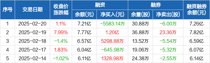 蔚蓝锂芯:融资净偿还5583.14万元,融资余额7.21亿元(02-20)