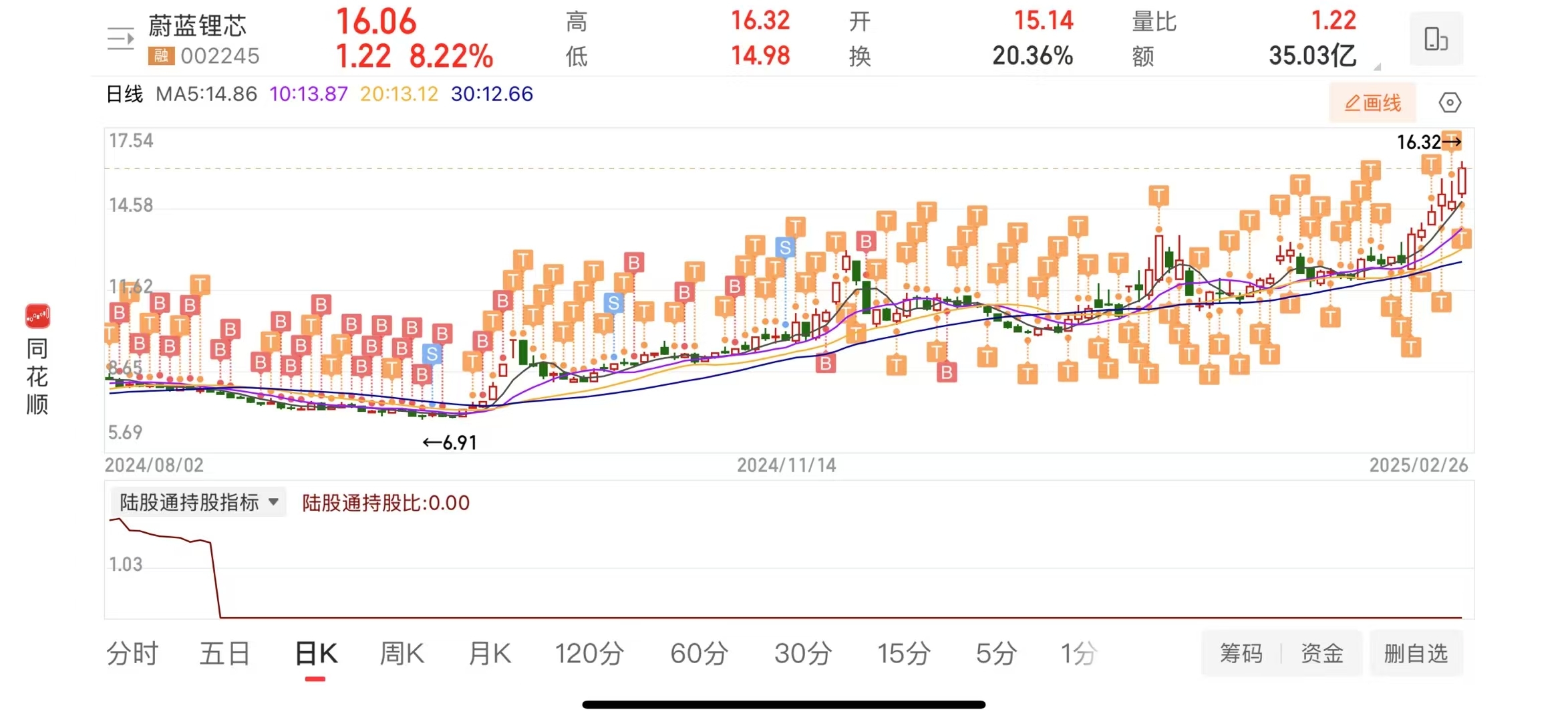 $蔚蓝锂芯(SZ002245)$
