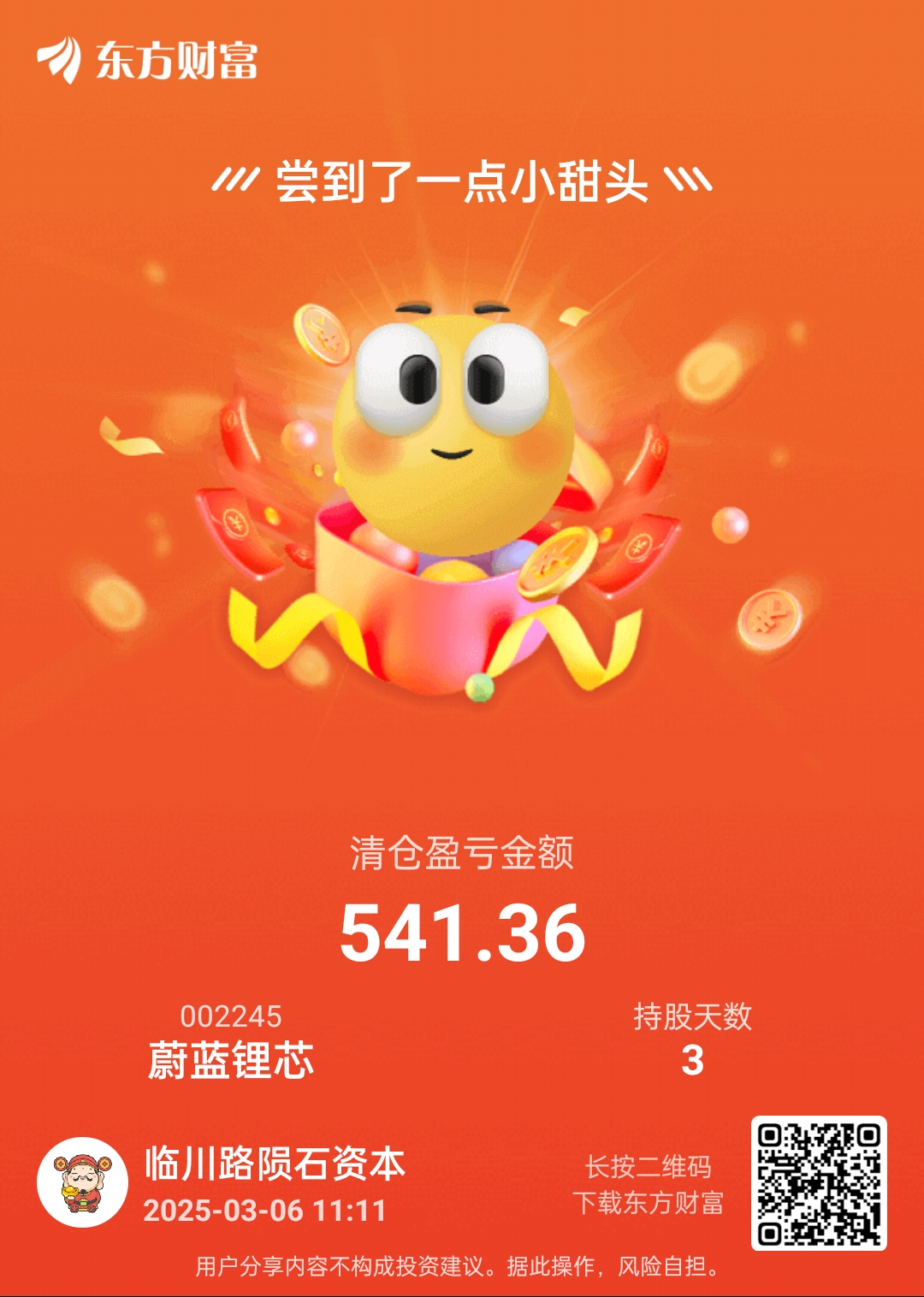 $蔚蓝锂芯(SZ002245)$ 小赚一点米,溜溜球