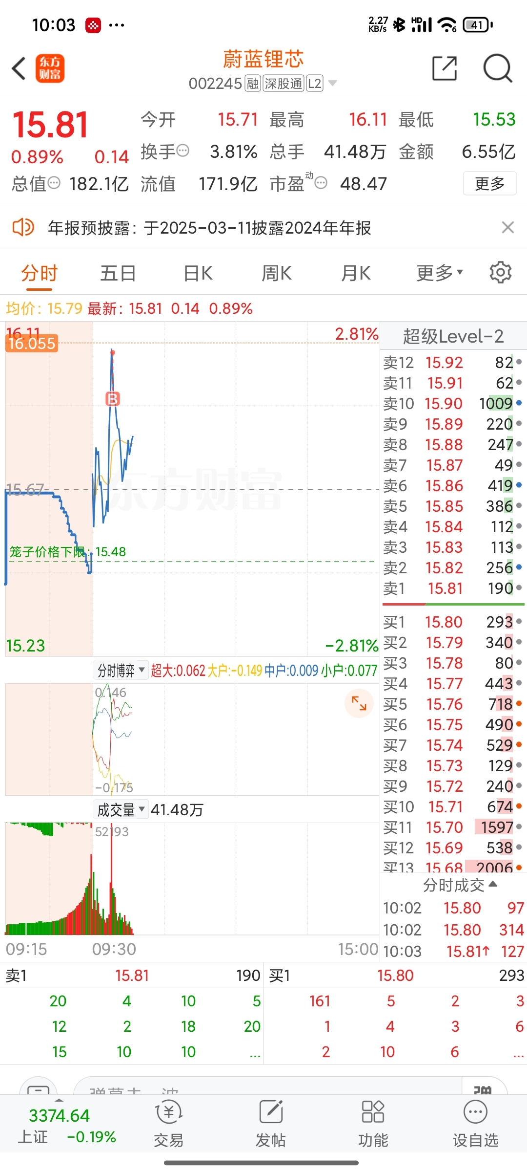 $蔚蓝锂芯(SZ002245)$ 对你爱得深沉,每次都被挂