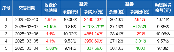 蔚蓝锂芯:融资余额10.06亿元,创历史新高(03-10)