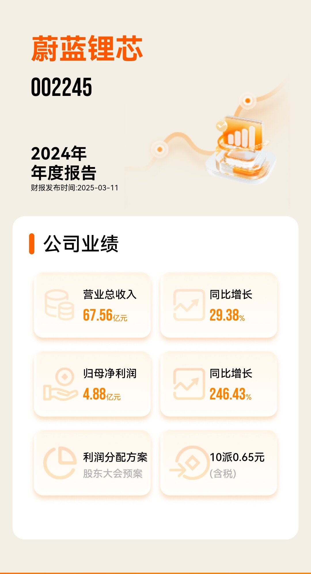 4月2日下午,蔚蓝锂芯(002245.SZ,股价14.02元,市值161.52亿元)召开2024年度股东大会,对此前发布的公司2024年年报等事项进行审议。
