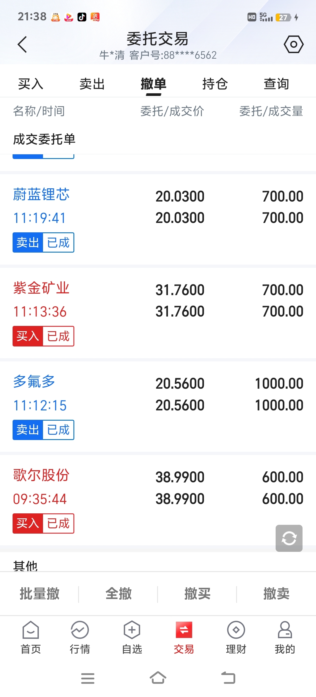 去弱留强,不与趋势为敌!趋势在我在,趋势不在我走人,留个底仓!继续减仓蔚蓝锂芯