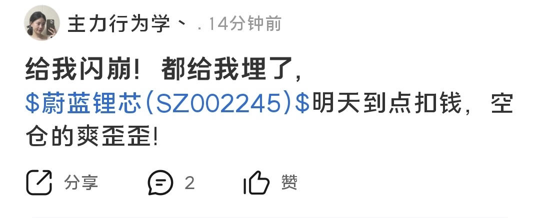 $蔚蓝锂芯(SZ002245)$ 这我直接屏蔽了