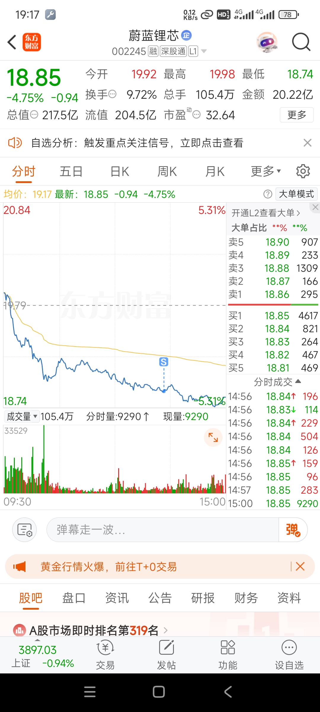 $蔚蓝锂芯(SZ002245)$ 亏一点割了算了。