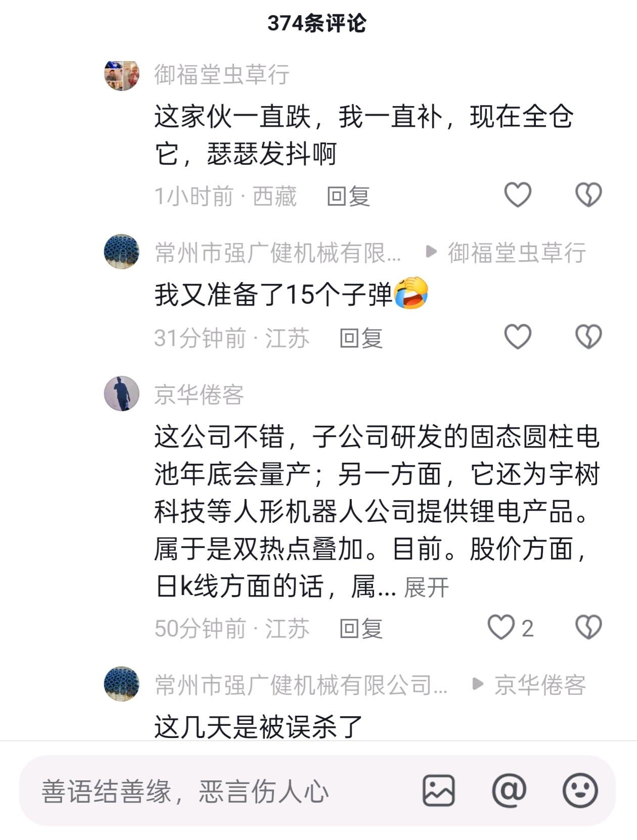 温馨提示: 1.根据《证券法》规定,禁止编造、传播虚假信息或者误导性信息,扰乱证券市场;2.用户在本社区发表的所有资料、言论等仅代表个人观点,与本网站立场无关,不对您构成任何投资建议。用户应基于自己的独立判断,自行决定证券投资并承担相应风险。《东方财富社区管理规定》