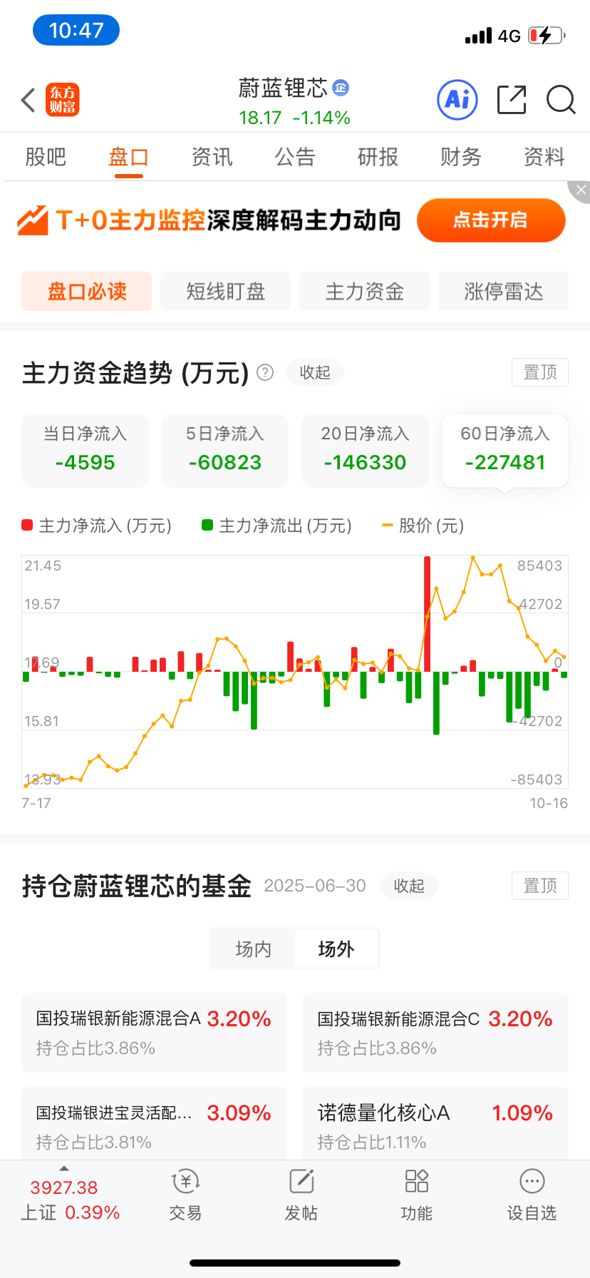 $蔚蓝锂芯(SZ002245)$ 对于这种主力持续流出的票,已没有希望了