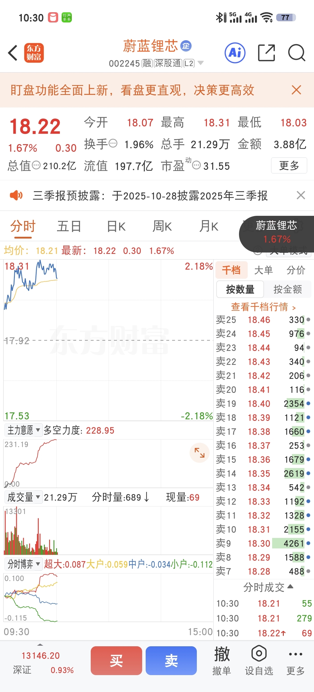 $蔚蓝锂芯(SZ002245)$ 今天就这样了,大单压着太多了,打不过来