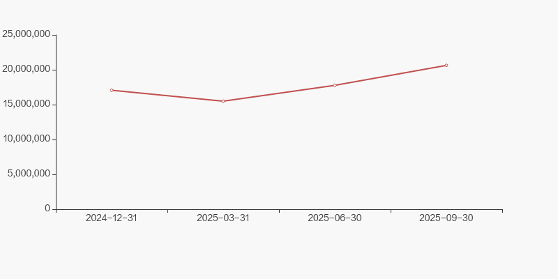 截至2025年9月30日,公司最新总股本为11.54亿股,其中流通股本为10.85亿股。户均持有流通股数量由上期的6370股下降至5101股,户均流通市值10.21万元。