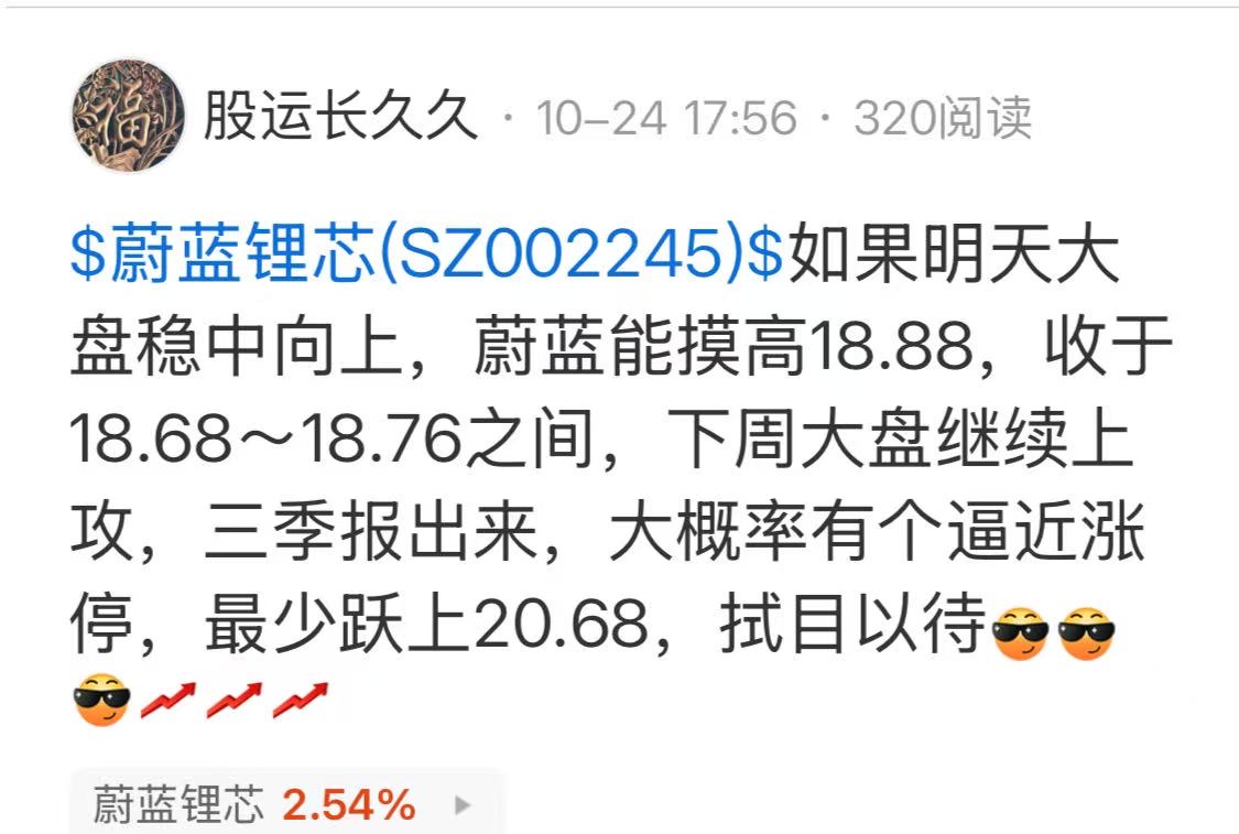 $蔚蓝锂芯(SZ002245)$ 上周五发的帖,这不来了吗?15900股静候