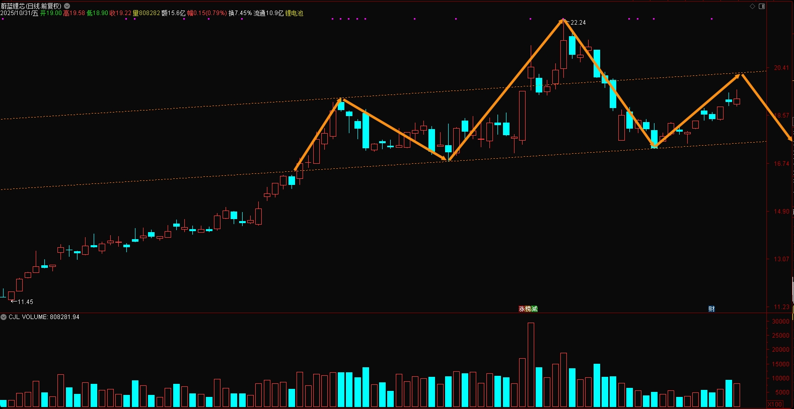 $蔚蓝锂芯(SZ002245)$ 头肩顶形态?希望不要走出来!