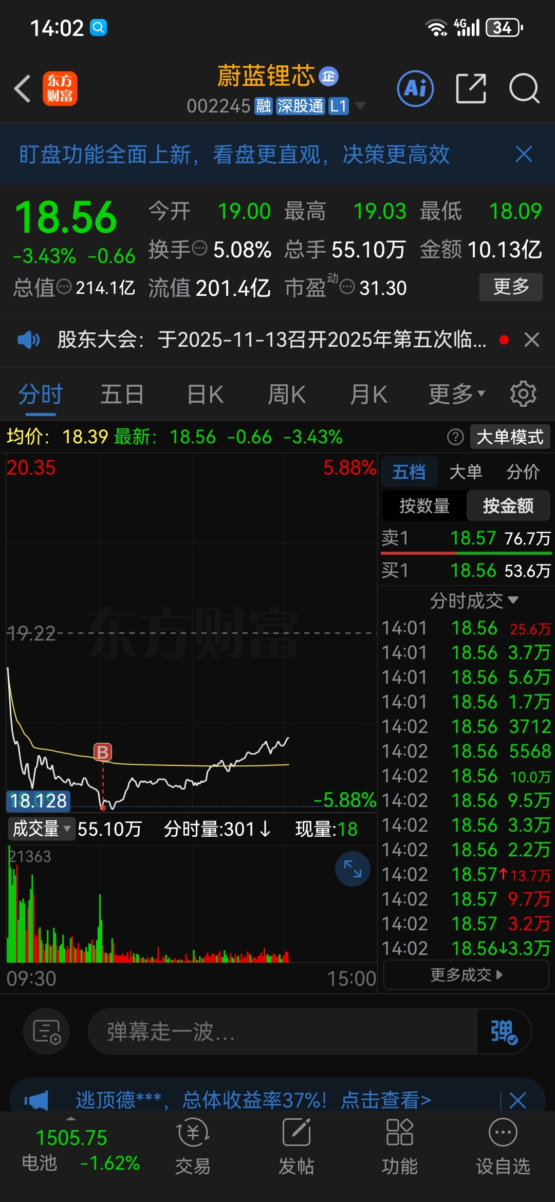 $蔚蓝锂芯(SZ002245)$ 买少了