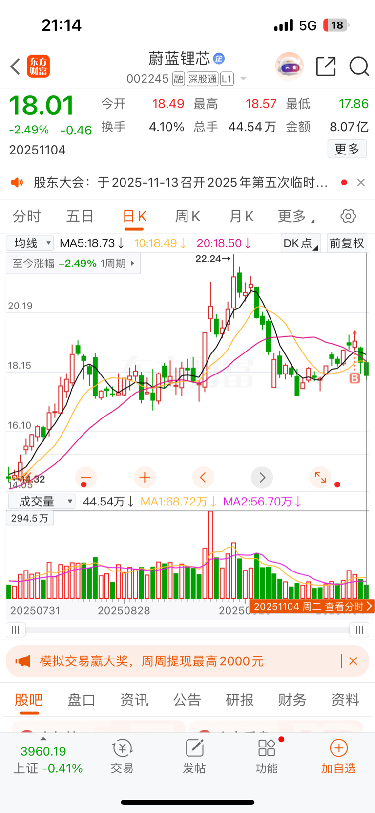 $蔚蓝锂芯(SZ002245)$ 兄弟们,都怪我进场了