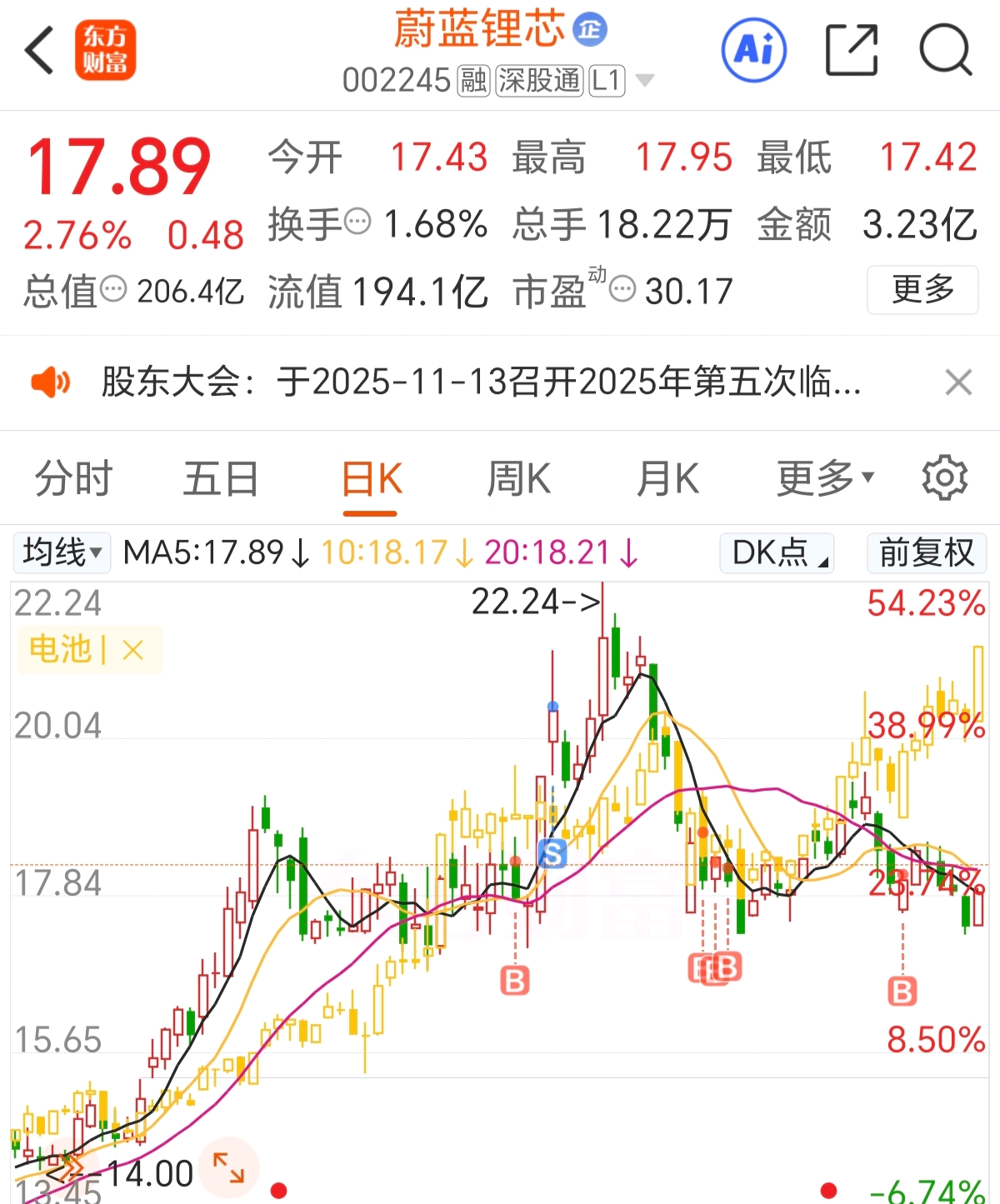 $蔚蓝锂芯(SZ002245)$ 跟电池板块的偏离也太多了