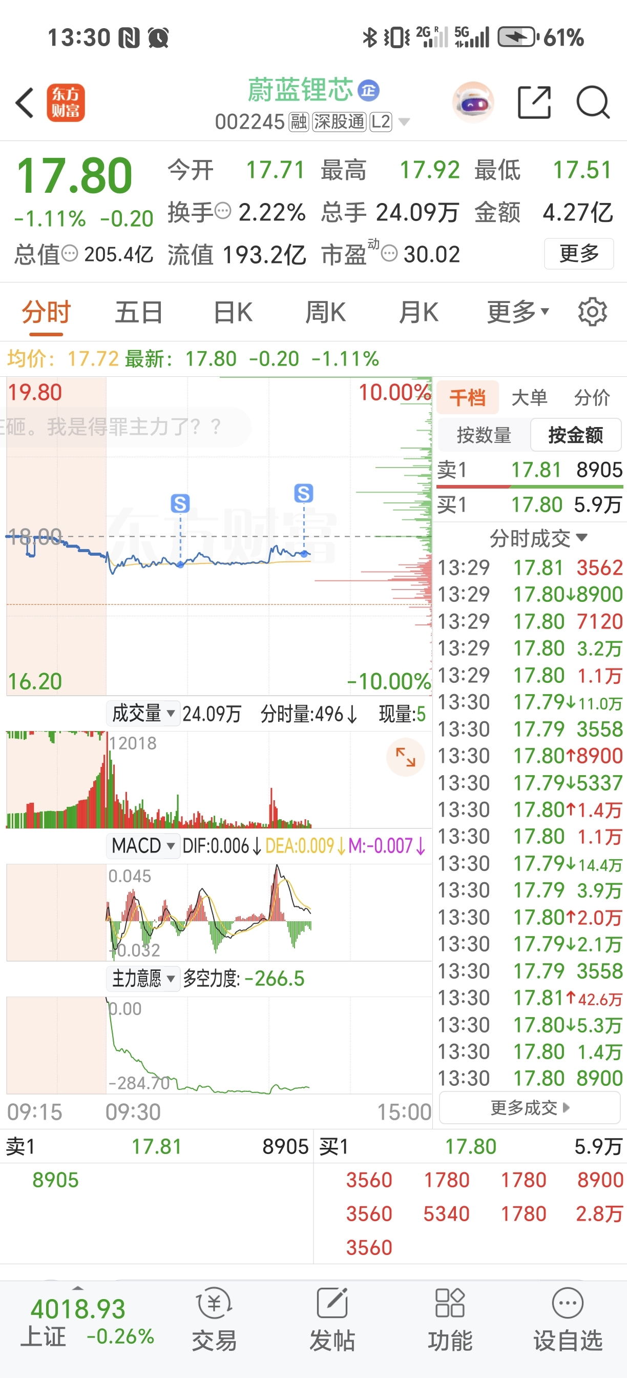 温馨提示: 1.根据《证券法》规定,禁止编造、传播虚假信息或者误导性信息,扰乱证券市场;2.用户在本社区发表的所有资料、言论等仅代表个人观点,与本网站立场无关,不对您构成任何投资建议。用户应基于自己的独立判断,自行决定证券投资并承担相应风险。《东方财富社区管理规定》