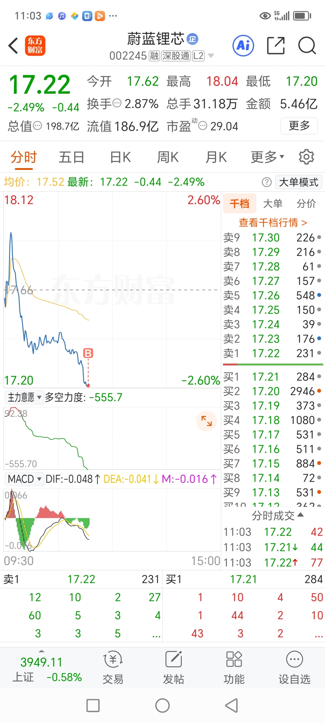 $蔚蓝锂芯(SZ002245)$ 马的,加仓