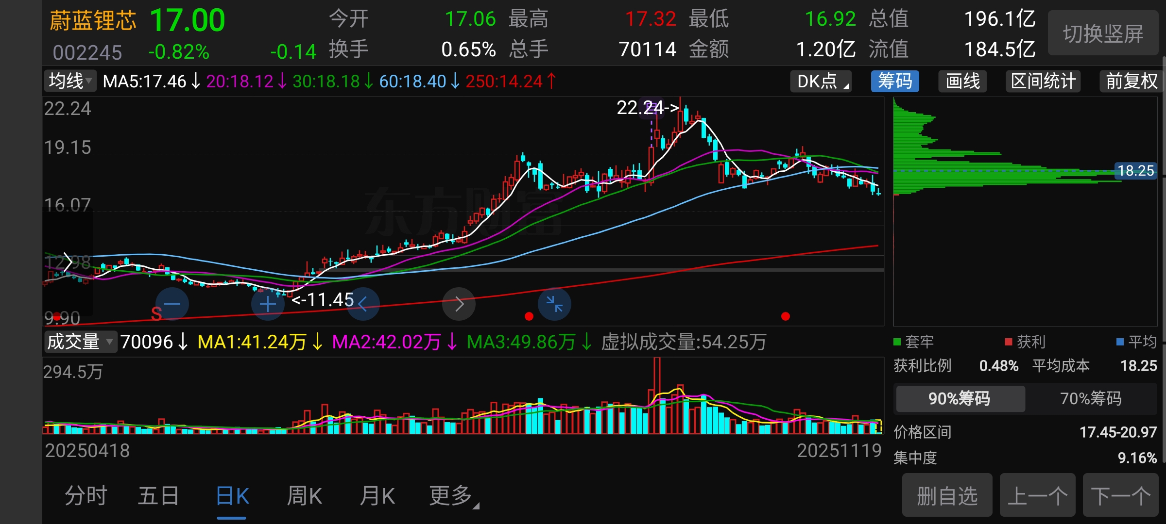 $蔚蓝锂芯(SZ002245)$ 这股还有利润吗,全是套牢盘