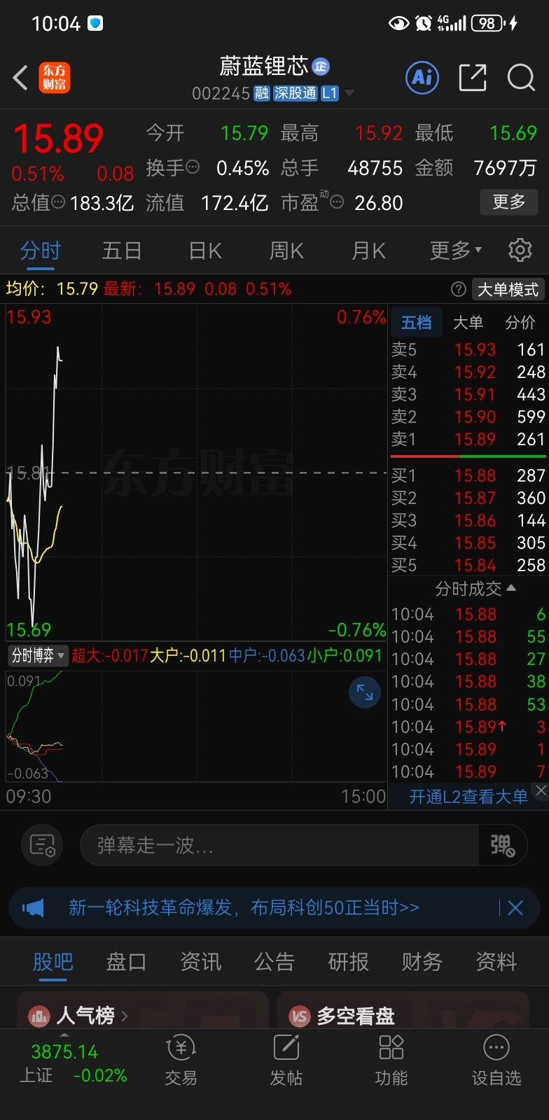 温馨提示: 1.根据《证券法》规定,禁止编造、传播虚假信息或者误导性信息,扰乱证券市场;2.用户在本社区发表的所有资料、言论等仅代表个人观点,与本网站立场无关,不对您构成任何投资建议。用户应基于自己的独立判断,自行决定证券投资并承担相应风险。《东方财富社区管理规定》
