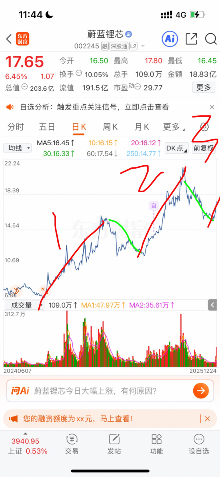 $蔚蓝锂芯(SZ002245)$ 目测最陡的一段主升浪要来了,不要轻易下车,暂时看到26附近