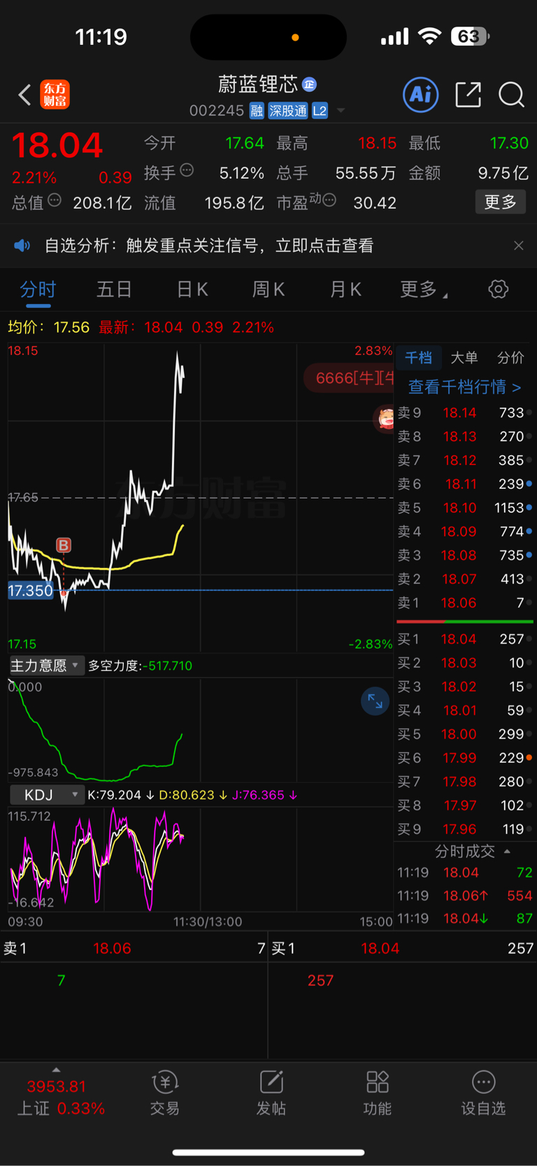 $蔚蓝锂芯(SZ002245)$ 该做还得做,不去想太多。