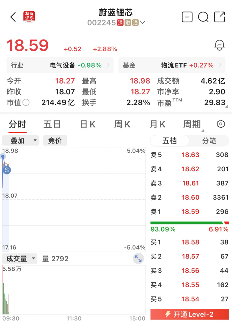 $蔚蓝锂芯(SZ002245)$ 走了走了 留下发财 感谢主力 不埋之恩