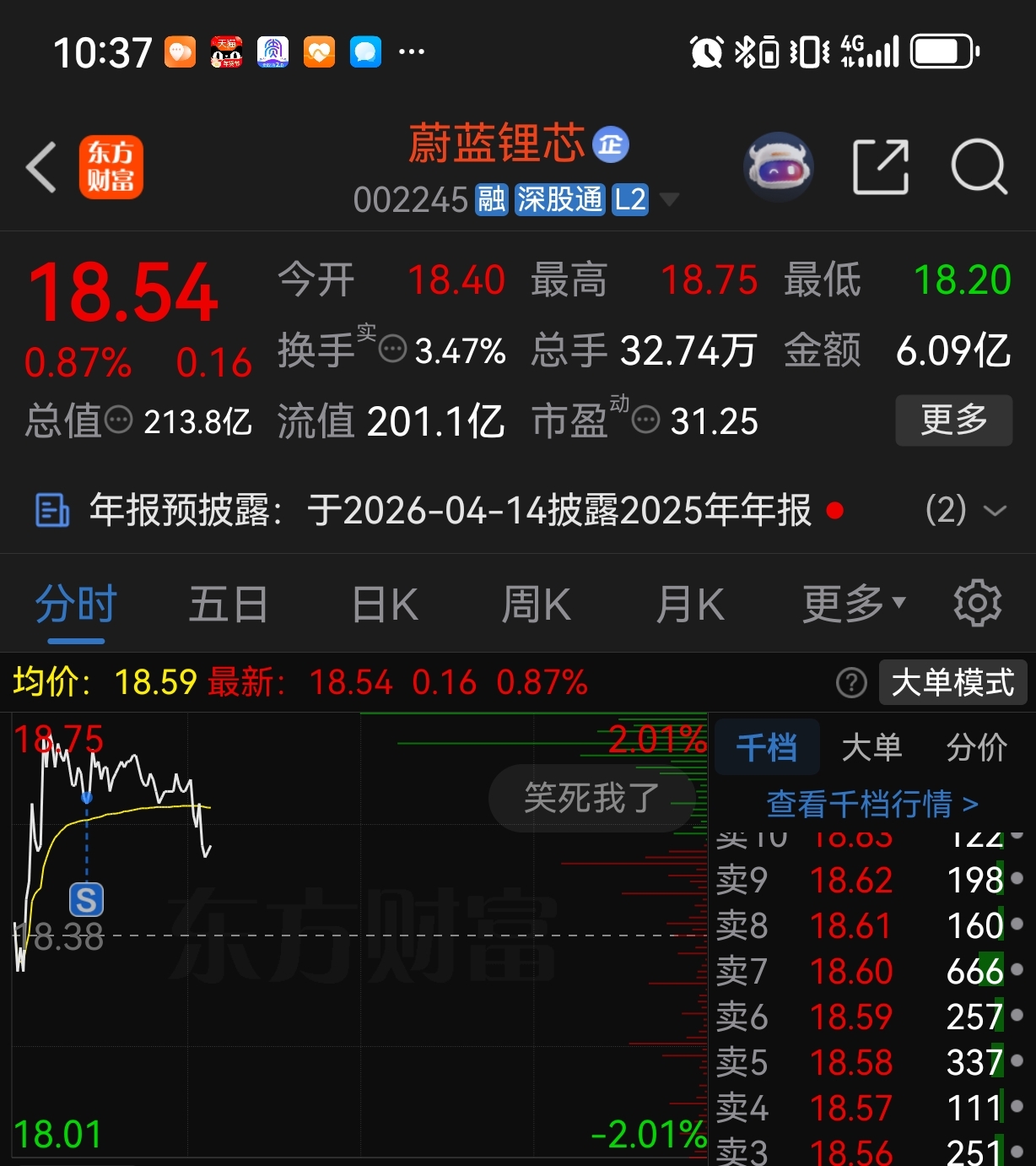 $蔚蓝锂芯(SZ002245)$ 跑路去长电了,目前2个点的收益