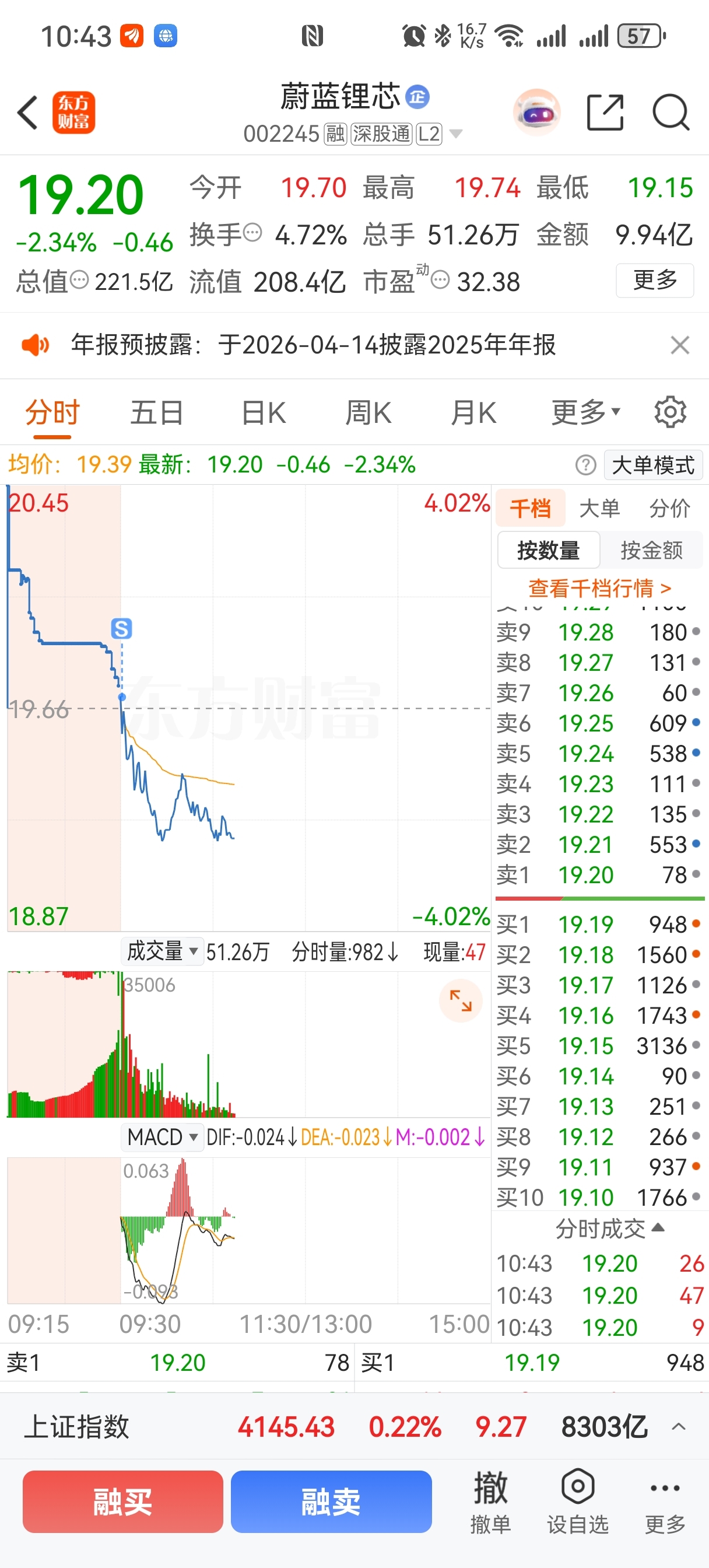 $蔚蓝锂芯(SZ002245)$ 真是垃圾,一看低开就知道没戏了