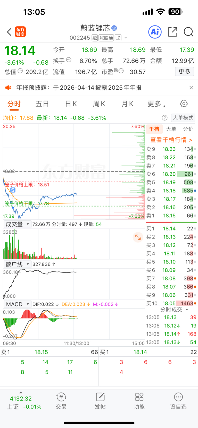 $蔚蓝锂芯(SZ002245)$ 兄弟们卖完绝对拉起来