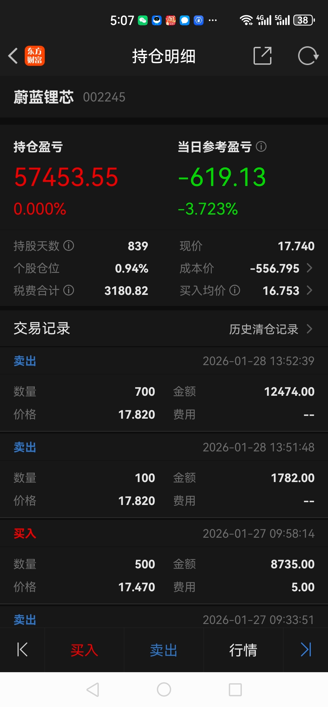感谢蔚蓝锂芯陪我的839天感谢感谢!!!!税费都3000多了。我不适合炒股所以再