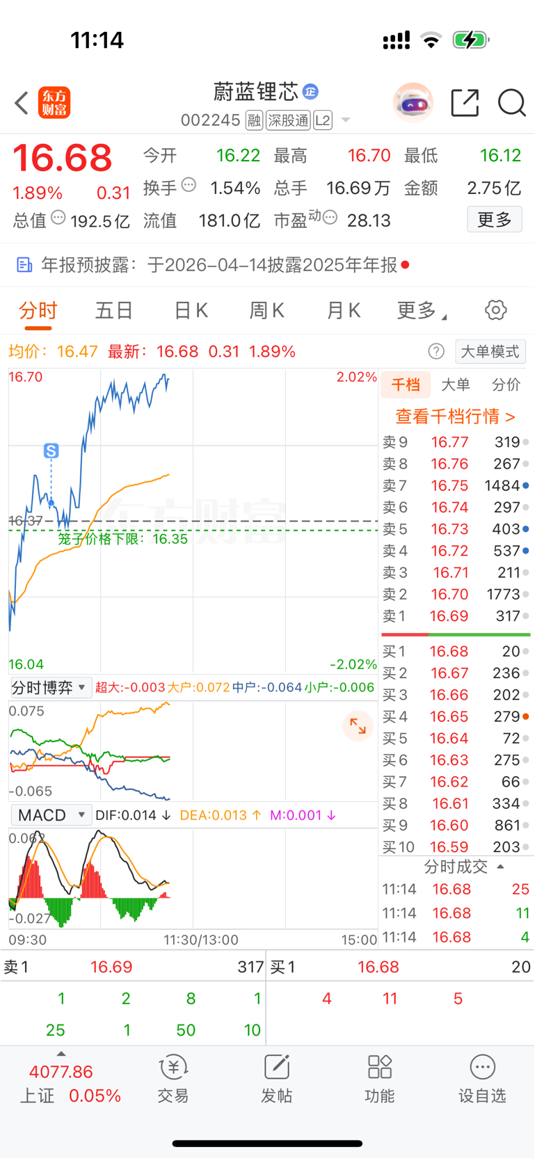 $蔚蓝锂芯(SZ002245)$ 兄弟们别急,会涨的,因为我今天割肉了。