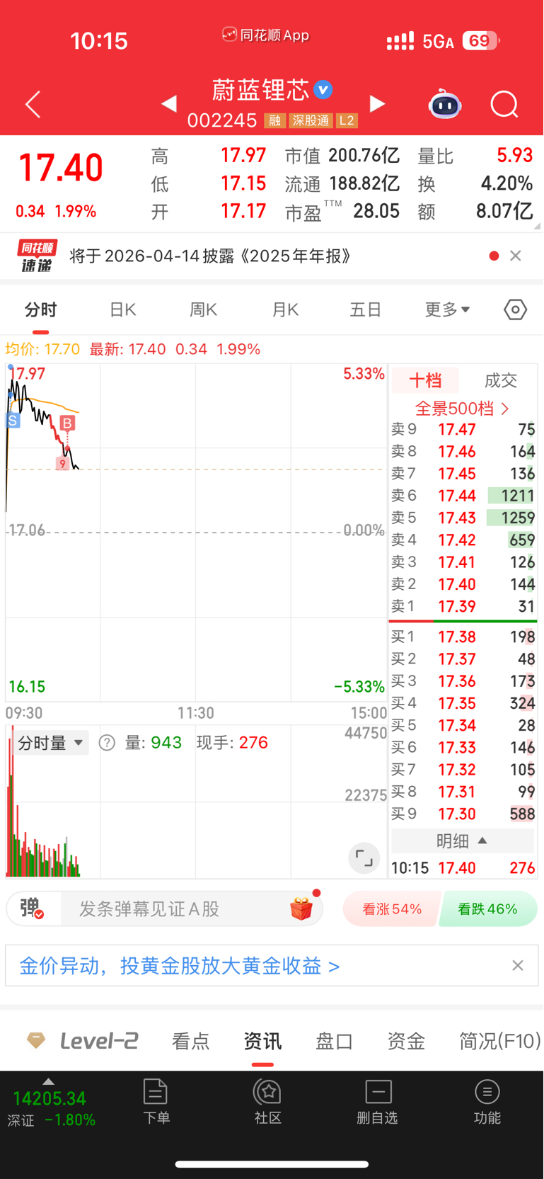 $蔚蓝锂芯(SZ002245)$ 跟着做T就好了