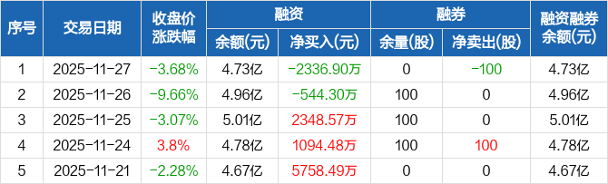 北化股份:融资净偿还2336.9万元,融资余额4.73亿元(11-27)