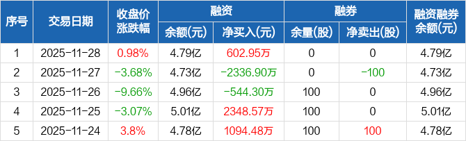 北化股份:融资净买入602.95万元,融资余额4.79亿元(11-28)