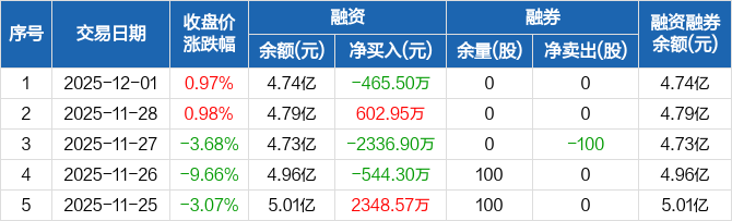 北化股份:融资净偿还465.5万元,融资余额4.74亿元(12-01)