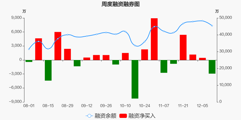 北化股份本周(2025/12/08-2025/12/12)累计涨幅达2.9%,截至12月12日最新股价报收17.40元。从增量上来看,12月8日至12月11日融资买入交易规模8347.27万元,融资偿还规模1.13亿元,期内融资净偿还2922.09万元。从存量上来看,截止12月14日,北化股份融资融券余额4.54亿元,其中融资余额规模4.54亿元,融券余额规模0元。