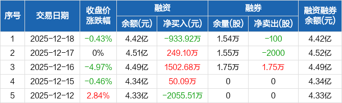 北化股份:融资净偿还933.92万元,融资余额4.42亿元(12-18)